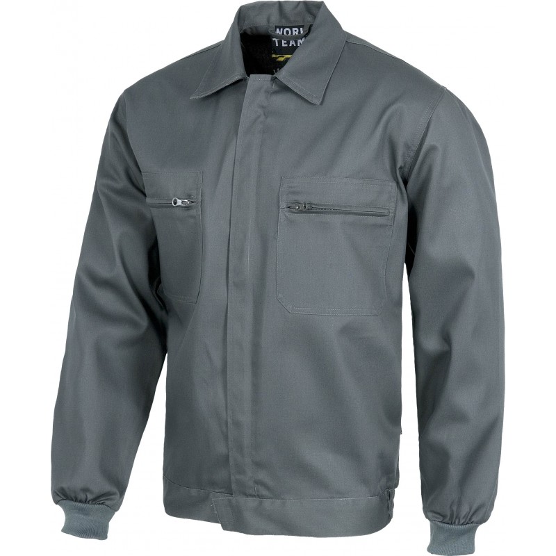 Caçadora amb coll camiser i tanca de cremallera de niló oculta. Dues bosses de pit de plastó amb cremallera de niló. Puny elàstic. Tancament de velcro a la cintura i elàstic en els laterals.