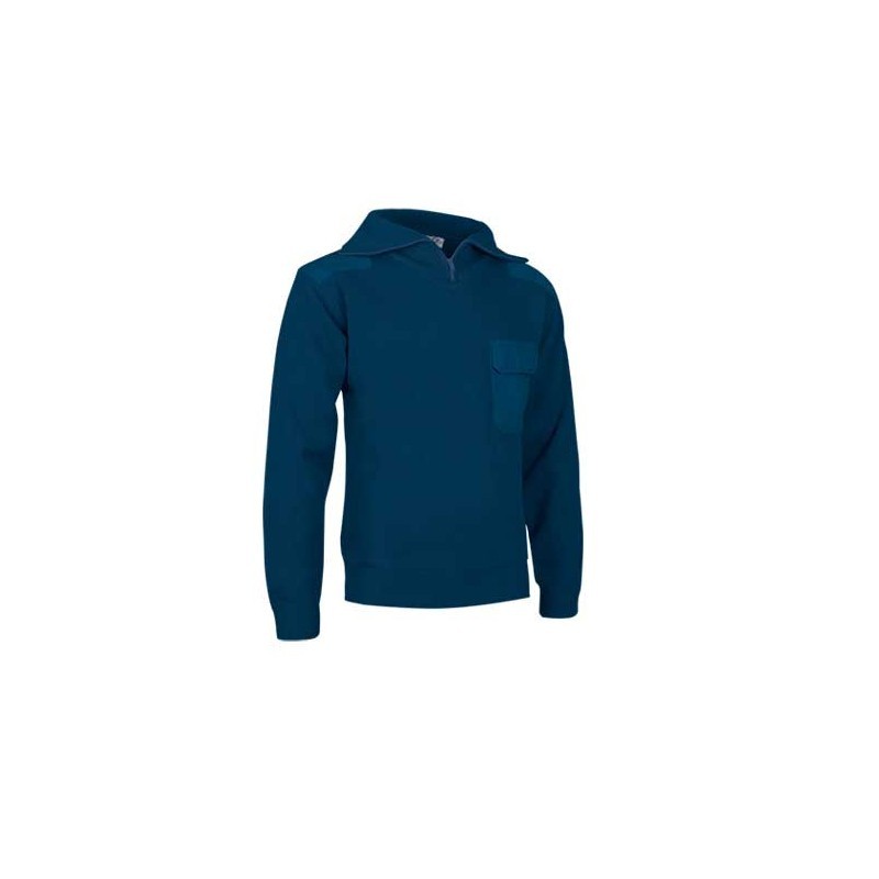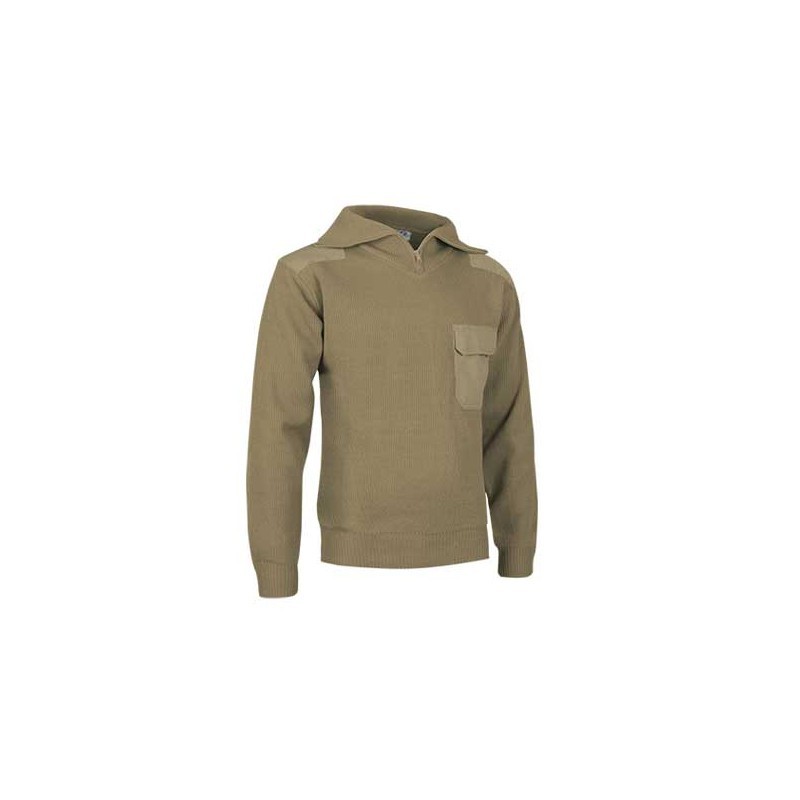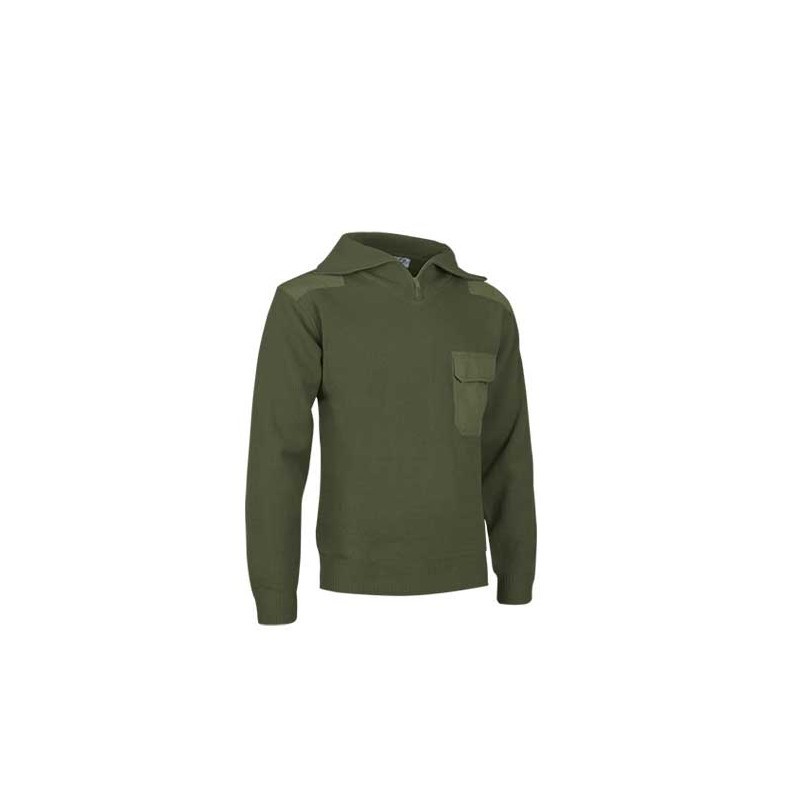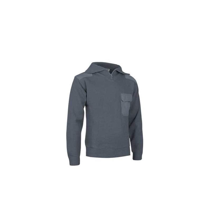 Jersei amb coll alt, confeccionat en teixit de punt gruixut. Coll especialment alt, amb cremallera fins a mig pit, que permet protegir el coll i una gran part de la cara davant el fred i el vent. Reforços de sarja en colzes i espatlles, que li proporcionen gran resistència a les zones de major desgast. Butxaca de sarja en pit esquerre amb tancament de tapa i velcro. Inclou una petita obertura a la tapa de la butxaca per poder introduir un bolígraf. Indicat per a treballs a la intempèrie.