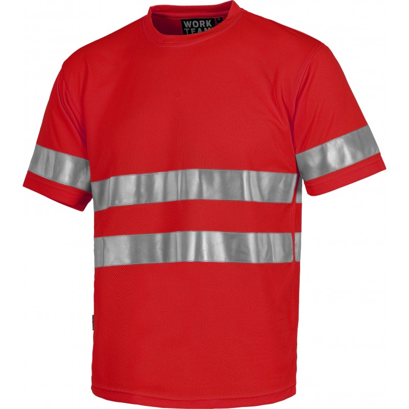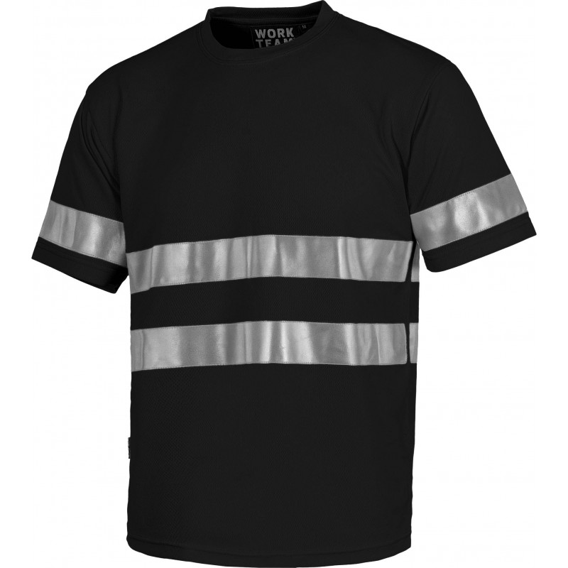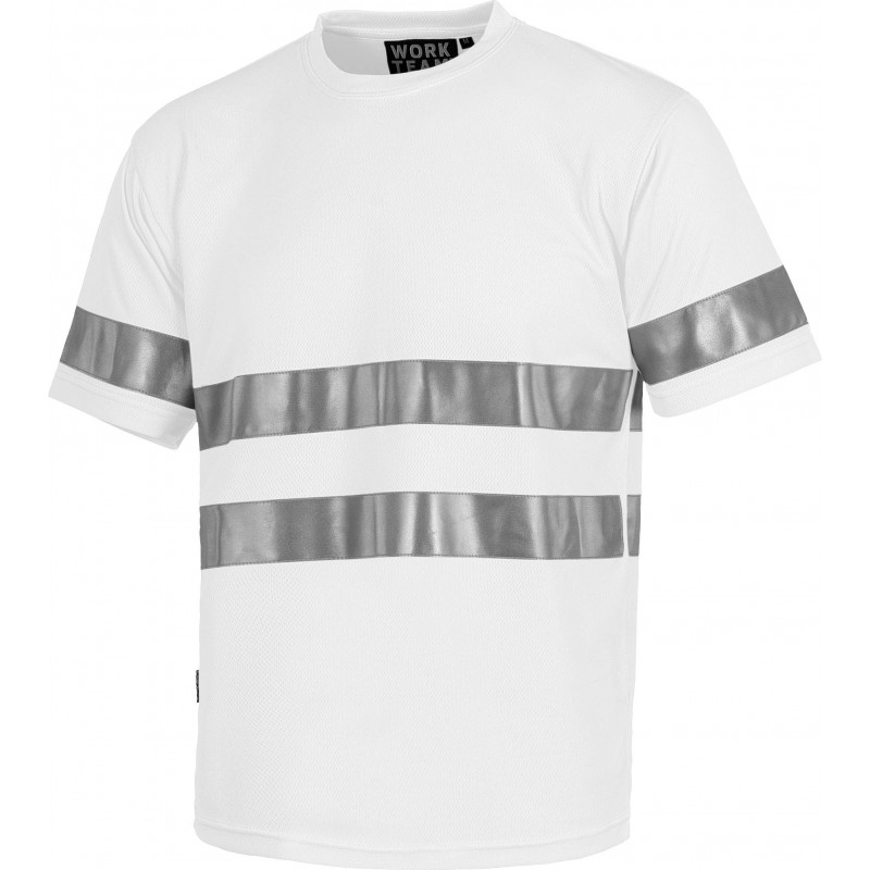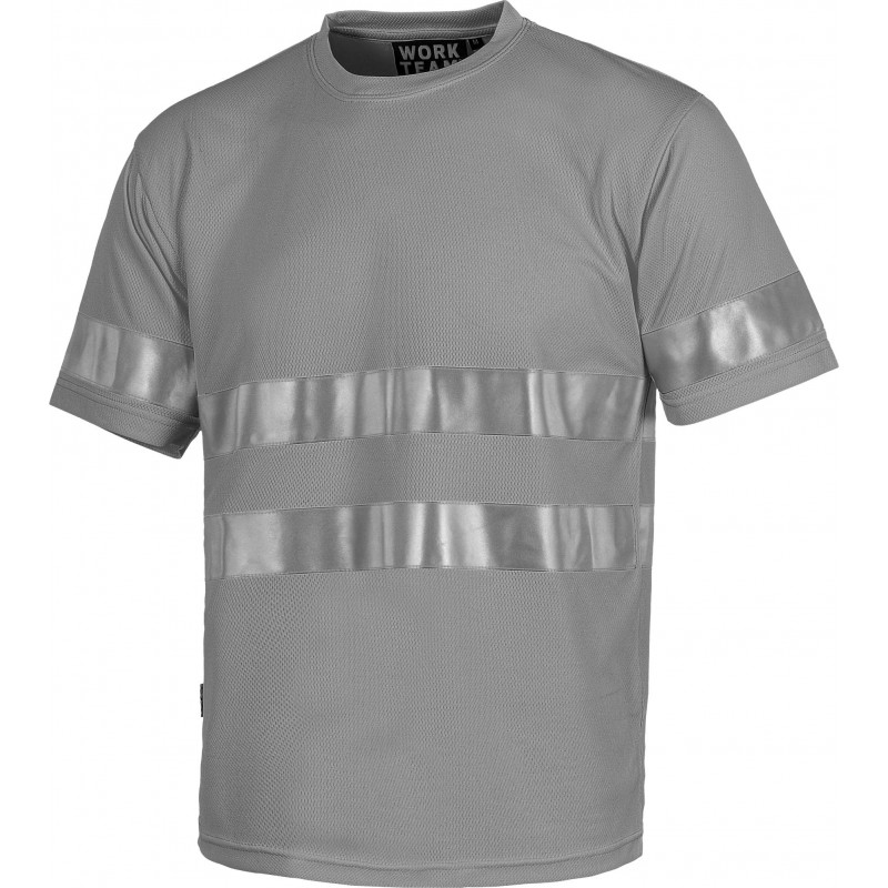 Samarreta de màniga curta en polièster ull de perdiu amb cintes reflectants. Coll rodó amb cubrecosturas interior. Una cinta reflectant en mànigues i dos a pit i esquena. Teixit fresc i lleuger d'alta permeabilitat a l'aire. Transpirable, de fàcil assecat i resistent a l'encongiment.