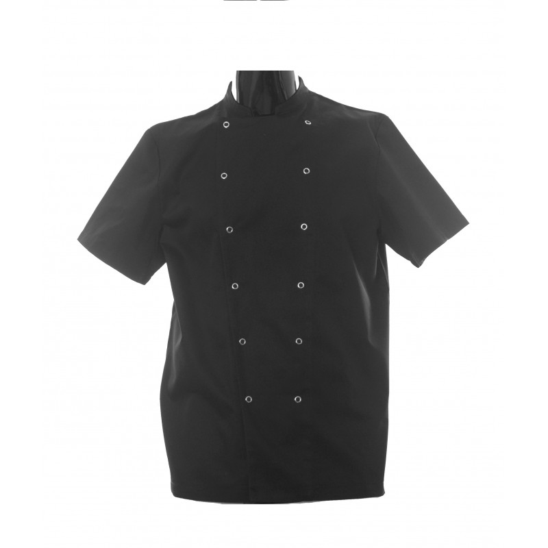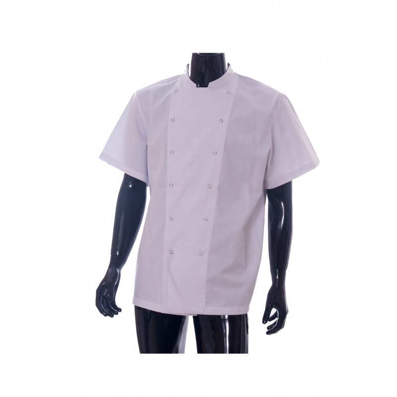 Chaqueta de cocina confeccionada en poliéster-algodon, manga corta y clip metalico 65% POLIESTER 35% ALGODON